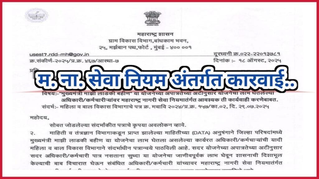 Marathisanhita खुशी पवार प्रतिनिधी [ Under Maharashtra Civil Services Rules, these state officers/employees will be liable ] : मुख्यमंत्री माझी लाडकी बहीण या योजनेच्या अपात्रतेच्या अटीनुसार योजनेचा लाभ घेतलेल्या अधिकारी