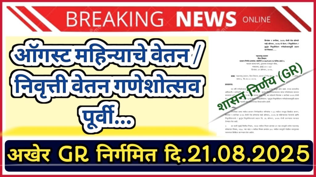 Marathisanhita प्राची पवार प्रतिनिधी [ Salary/Pension for the month of August on 26th August; GR issued through Finance Department on 21.08.2025 ] : राज्य कर्मचारी / पेन्शन धारकांचे माहे ऑगस्ट