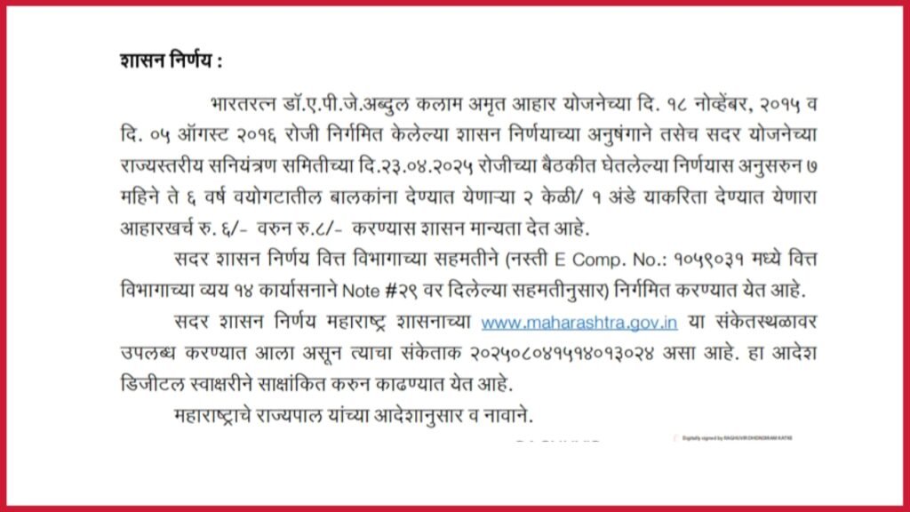 Marathisanhita चंदना पवार प्रतिनिधी [ Government approves Rs 8 per day for food expenses for children aged seven months to 6 years ] : सात महिने ते 06 वर्षे वयोगटातील