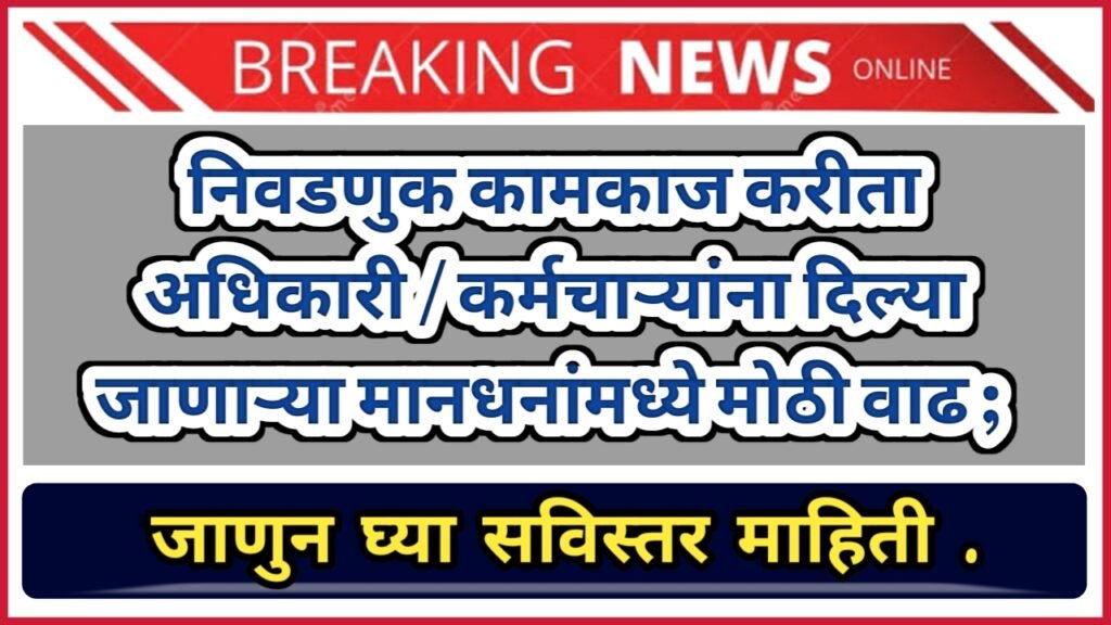 Marathisanhita चंदना पवार प्रतिनिधी [ Huge increase in honorarium paid to officers/employees for election work ] : निवडणुक कामकाज करीता अधिकारी / कर्मचाऱ्यांना दिल्या जाणाऱ्या मानधनांमध्ये वाढ करणेबाबत निवडणुक कमीशन