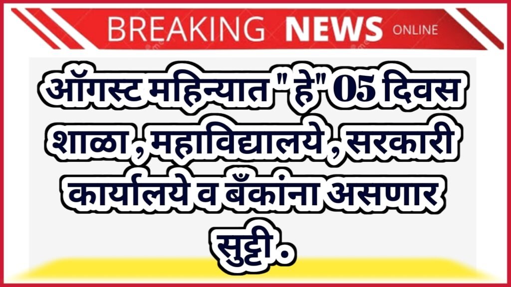 Marathisanhia चंदना पवार प्रतिनिधी [ 03 consecutive days off on this date in August ] : माहे ऑगस्ट महिन्यांत तीन दिवस सलग शाळा , महाविद्यालये , सरकारी कार्यालये तसेच बँकांना