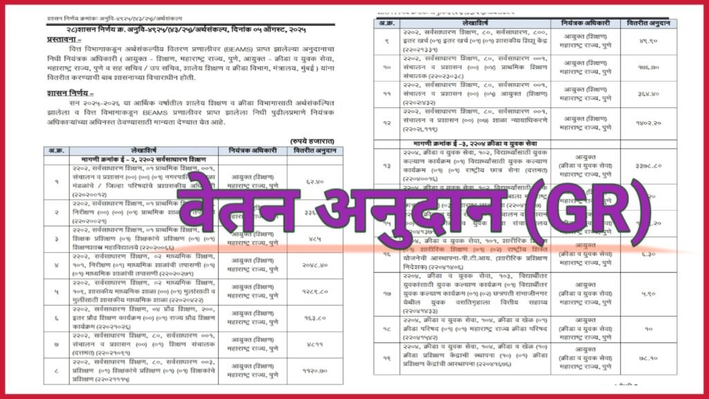 Marathisanhita संगिता पवार प्रतिनिधी [ Wage Subsidy Government Decision GR dated 07.08.2025 ] : वेतन अनुदान अदा करणेबाबत , राज्य सरकारच्या शालेय शिक्षण व क्रिडा विभाग मार्फत दिनांक 07 ऑगस्ट