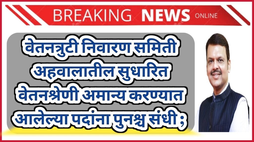 Marathisanhita चंदना पवार प्रतिनिधी [ Re-appointment of posts whose revised pay scale in the Pay Deficiency Redressal Committee report was rejected ] : वेतनत्रुटी निवारण समिती म्हणजेच खुल्लर समितीने विविध
