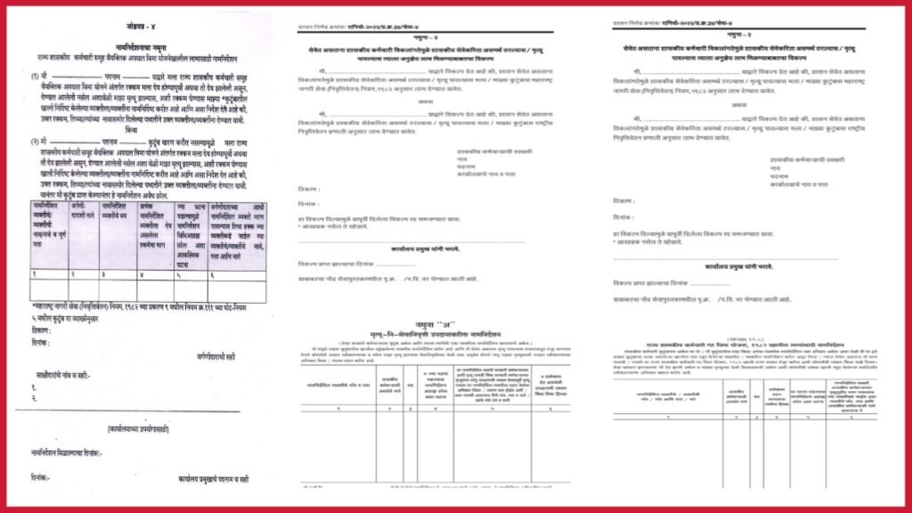 Marathisanhita चंदना पवार प्रतिनिधी [ Various nomination forms regarding state employees… ] : महाराष्ट्र राज्य शासन सेवेत कार्यरत कर्मचाऱ्यांना आपल्या सेवा काळात विविध नामनिर्देशन नमुने भरुन देणे आवश्यक असते .