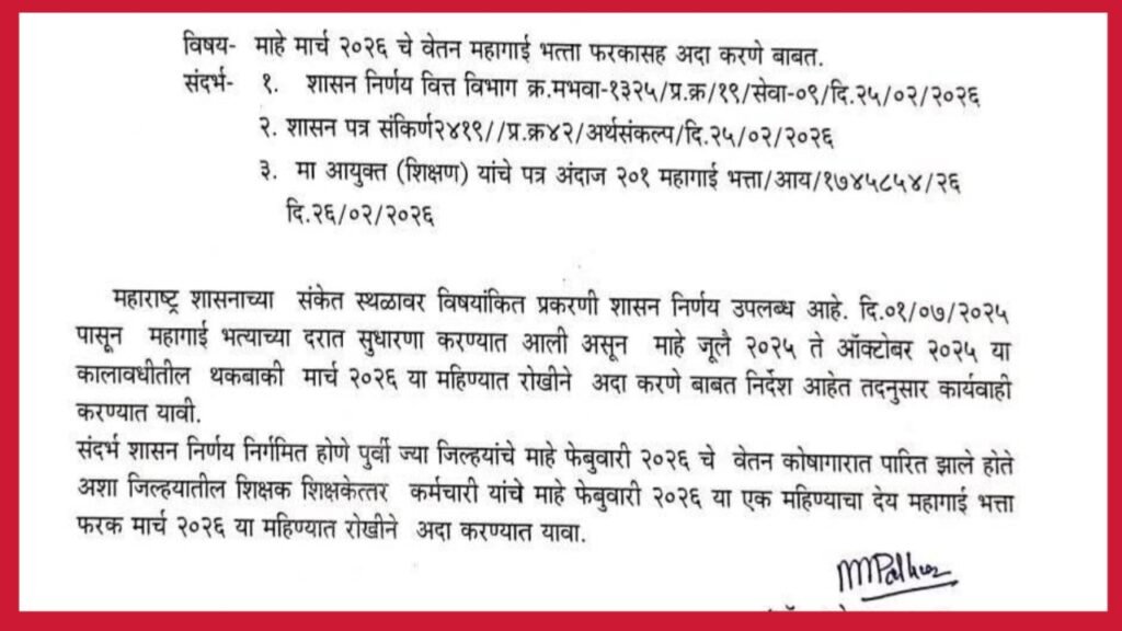 Marathisanhita चंदना पवार प्रतिनिधी [ Important Circular Issued on 07.04.2026 regarding the Payment of Dearness Allowance Arrears along with the March 2026 Salary. ] : मार्च 2026 च्या वेतनासोबत महागाई