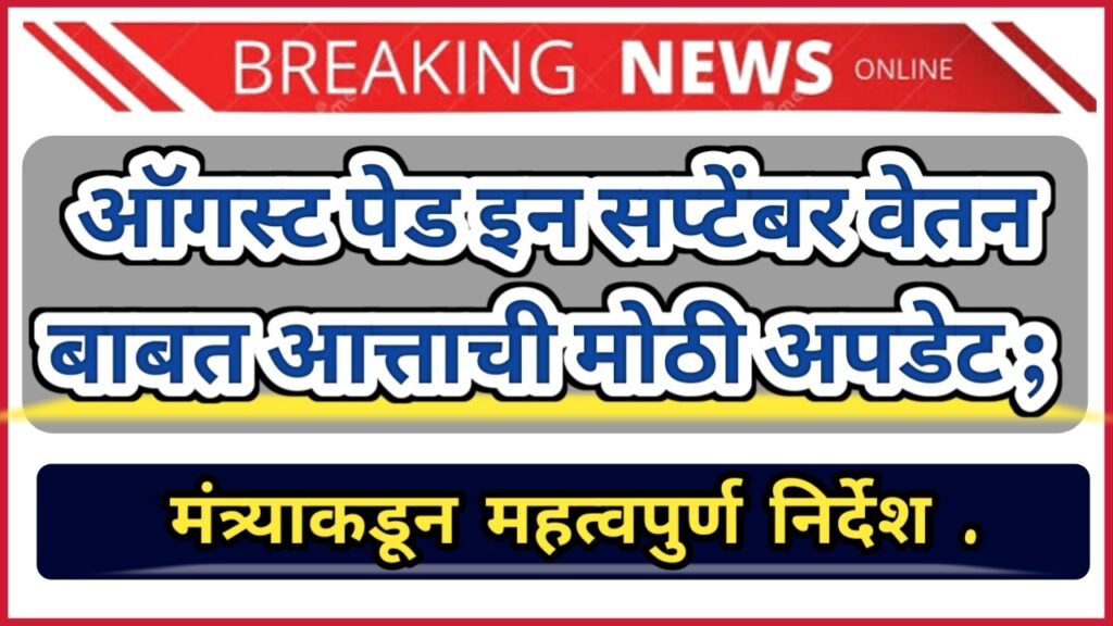 Marathisanhita चंदना पवार प्रतिनिधी [ Big update regarding August paid in September salary ] : ऑगस्ट पेड इन सप्टेंबर वेतन बाबत आत्ताची मोठी महत्वपुर्ण अपडेट समोर येत आहेत . मा.मंत्र्यांकडून
