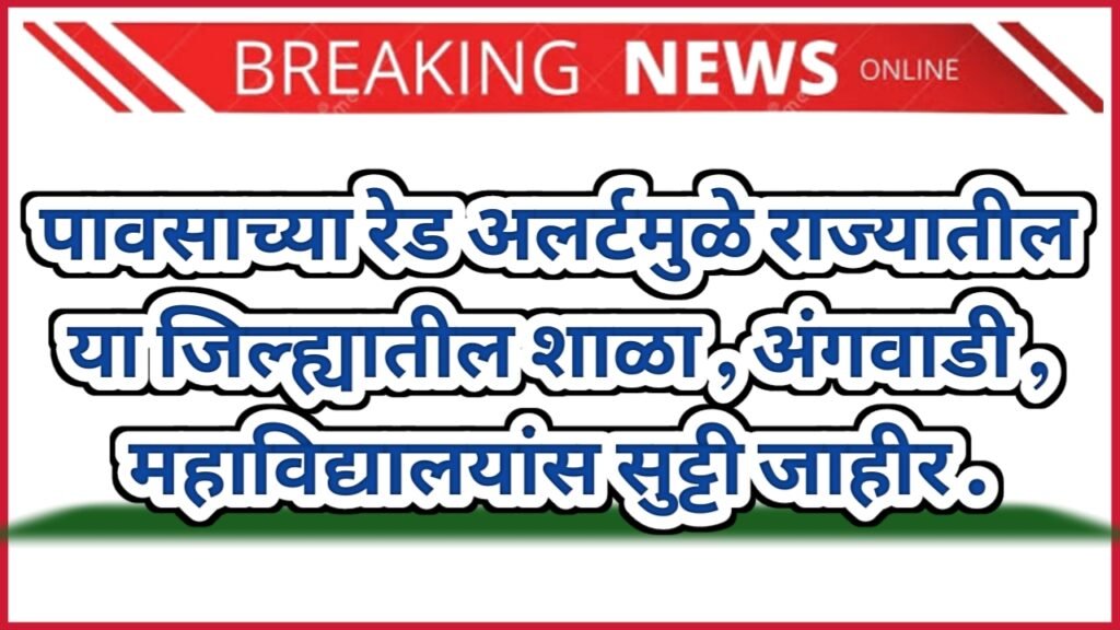 Marathisanhita चंदना पवार प्रतिनिधी [ Due to the red alert of rain, holidays have been declared for schools, daycare centers, and colleges in this district of the state. ] :