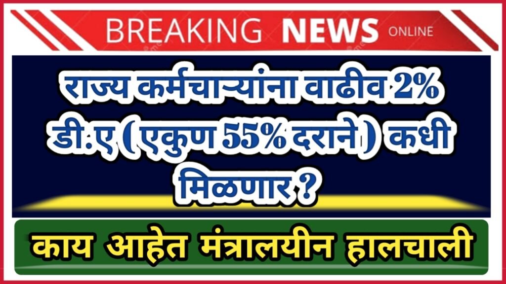 Marathisanhita चंदना पवार प्रतिनिधी [ When will state employees get an additional 2% DA (total 55%); What are the ministerial moves ? ] : राज्यातील अधिकारी / कर्मचाऱ्यांना केंद्र सरकारच्या