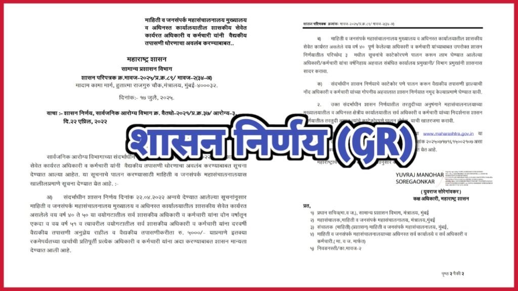 Marathisanhita चंदना पवार प्रतिनिधी [ Finance Department GR dated 18.07.2025 regarding renewal of medical reimbursement insurance umbrella scheme for serving and retired state government officers/employees. ] : कार्यरत व निवृतत