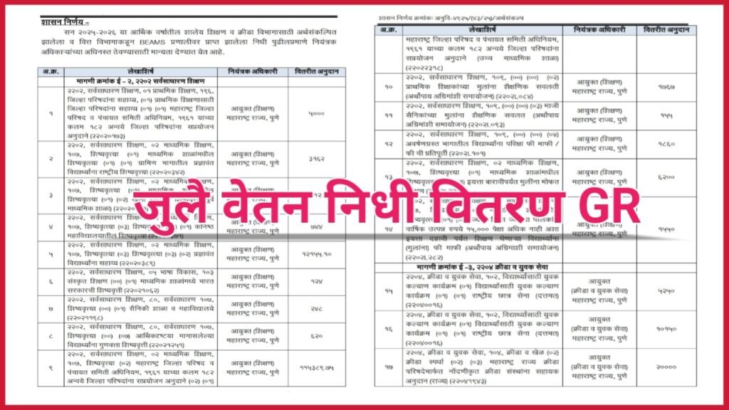 @marathipepar चंदना पवार प्रतिनिधी [ Distribution of funds for the salaries of employees for the month of July; GR issued on 17.07.2025 ] : राज्य कर्मचाऱ्यांचे माहे जुलै महिन्यांचे वेतन
