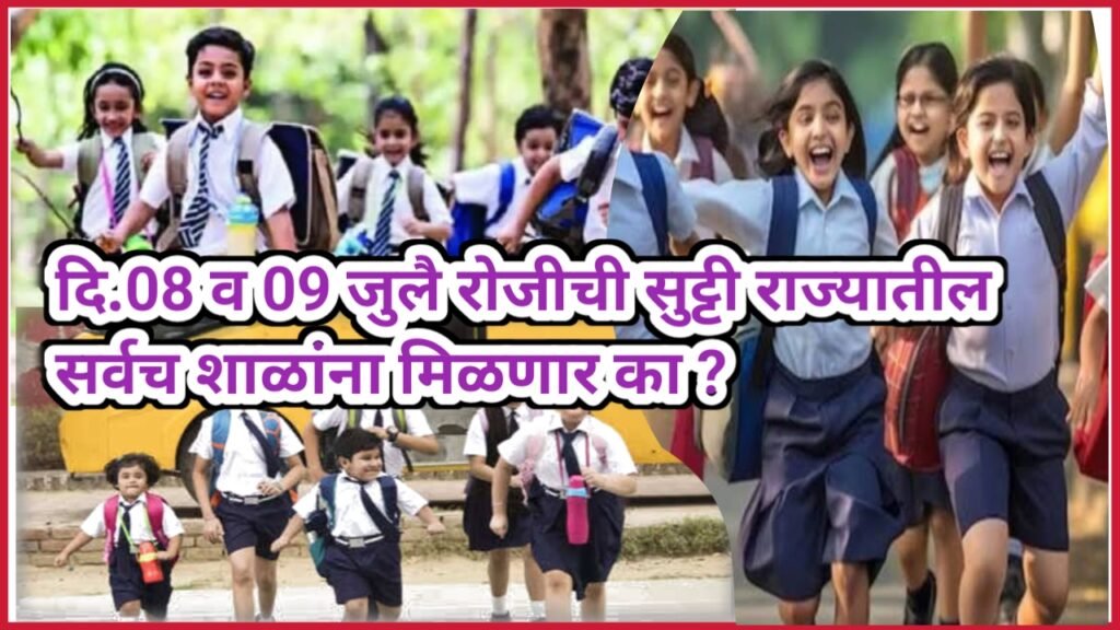 Marathisanhita चंदना पवार प्रतिनिधी [ Clarification regarding holidays for schools in the state on July 8th and 9th ] : दिनांक 08 व 09 जुलै रोजी राज्यातील शाळांना सुट्टी असणार