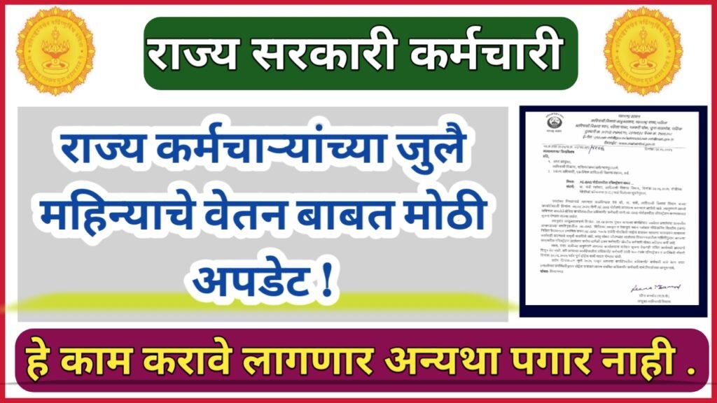 Marathisanhita चंदना पवार प्रतिनिधी [ Big update regarding July salary of state employees ] : राज्य कर्मचाऱ्यांच्या माहे जुलै महिन्यांच्या वेतन बाबत मोठी महत्वपुर्ण अपडेट समोर येत आहे . कर्मचाऱ्यांना