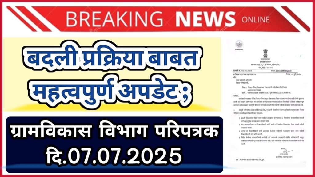 Marathisanhita चंदना पवार प्रतिनिधी [ Important update regarding transfer process ] : कर्मचाऱ्यांच्या बदली प्रक्रिया संदर्भात ग्रामविकास विभाग मार्फत दिनांक 07 जुलै 2025 रोजी महत्वपुर्ण परिपत्रक निर्गमित करण्यात आलेला आहे