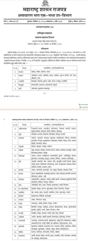 - या दोन दिवशी स्थानिक सुट्टी जाहीर ; शासन निर्णय निर्गमित दि.09.12.2025