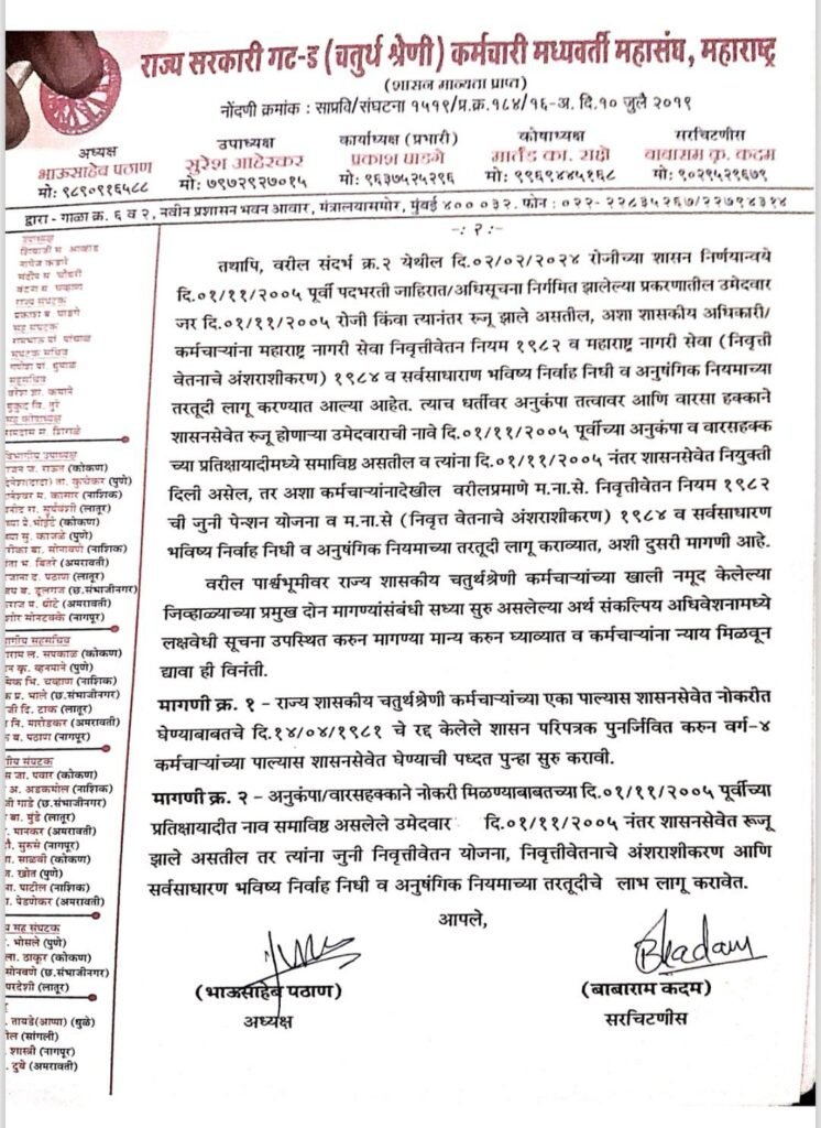 तसेच दिनांक 01.11.2005 पासुन राज्य शासकीय कर्मचाऱ्यांना अंशदायी पेन्शन योजना लागु केली होती , त्यामुळे दिनांक 01.11.2005 रोजी अथवा त्यानंतर शासन सेवेत रुजु झालेल्या कर्मचाऱ्यांना सन 1982 च्या जुन्या पेन्शन योजनेचा लाभ मिळत नव्हता ..
