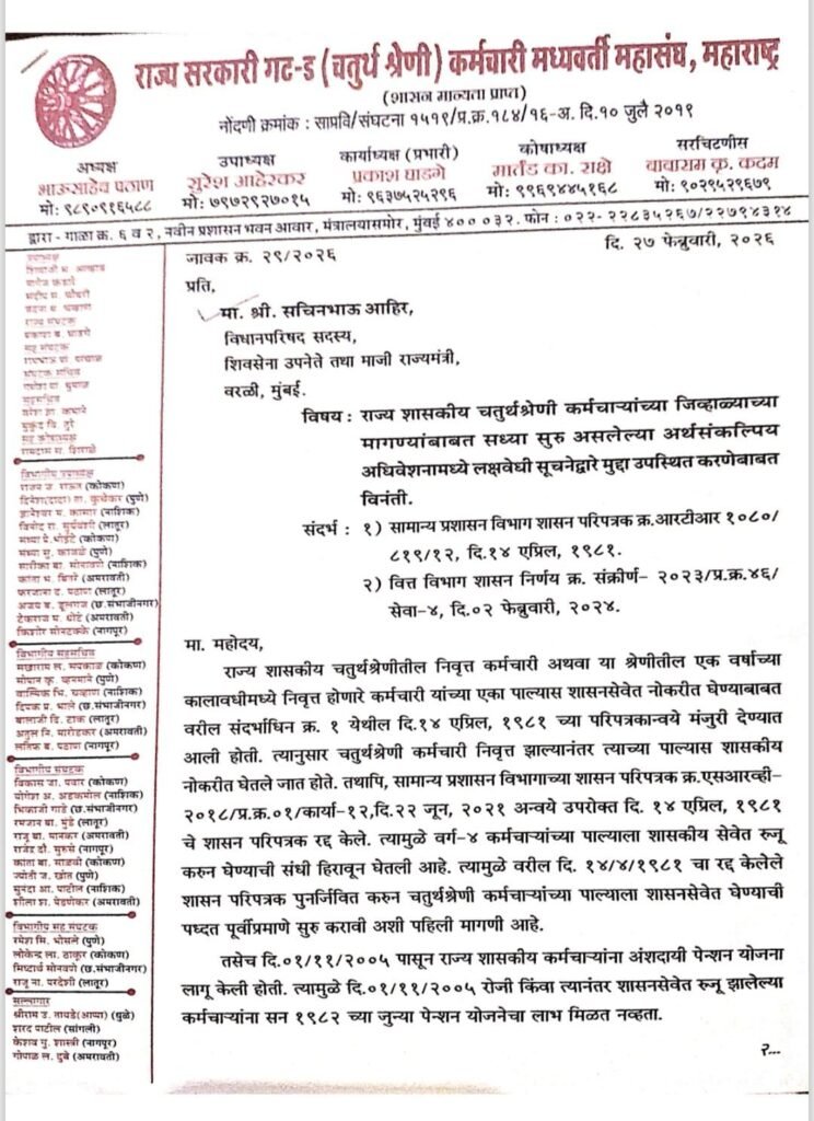 - राज्यातील चतुर्थश्रेणी कर्मचाऱ्यांच्या विविध मागणीकरीता निवेदन प्रस्ताव ..